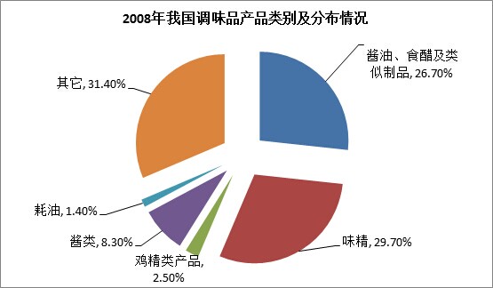 图表3 - 2008年我国调味品行业产品类别及分布情况(数据来源:中国调味品协会)
